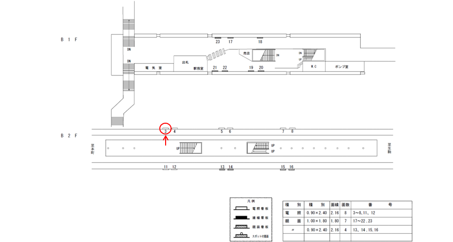 この看板以外にも改札の周辺の看板でしたり、7日間から使えるポスター広告などがあります。