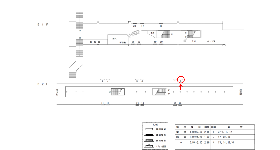 この看板以外にも改札の周辺の看板でしたり、7日間から使えるポスター広告などがあります。