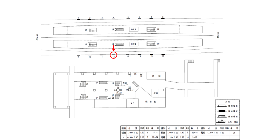 新石切駅 【ホーム用】の駅看板の利用状況はスタッフまでお問い合わせください。この看板はもちろんですが、他にもいい広告看板が空いていれば合わせてご案内差し上げます。