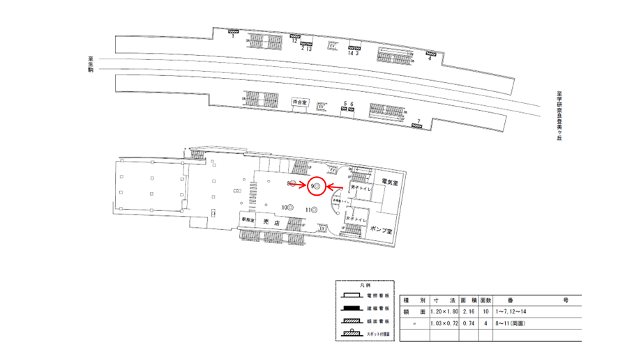 近鉄/学研北生駒駅//№9駅看板・駅広告、位置図