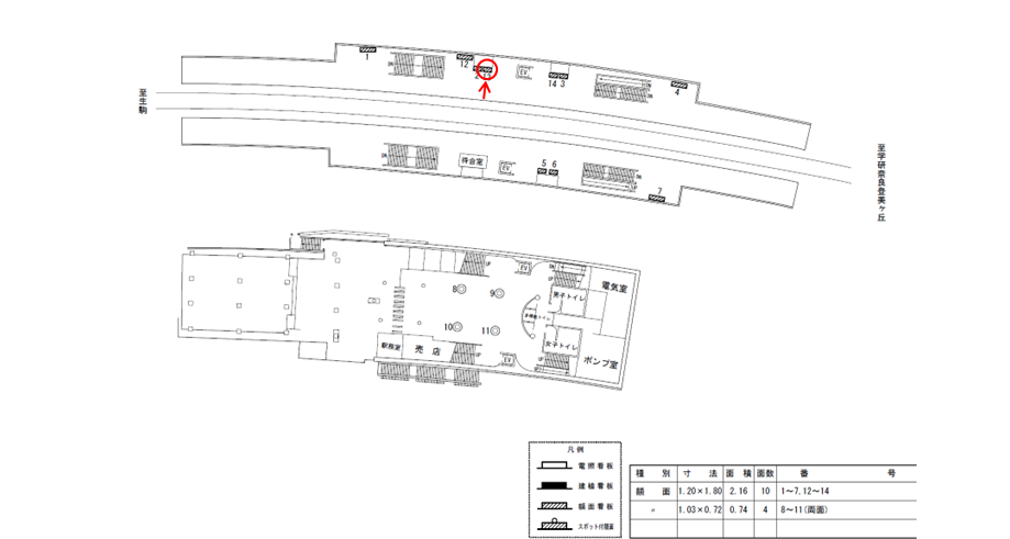この看板以外にも改札の周辺の看板でしたり、7日間から使えるポスター広告などがあります。
