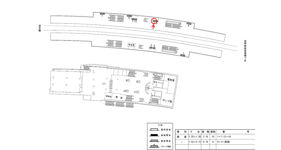 この看板以外にも改札の周辺の看板でしたり、7日間から使えるポスター広告などがあります。