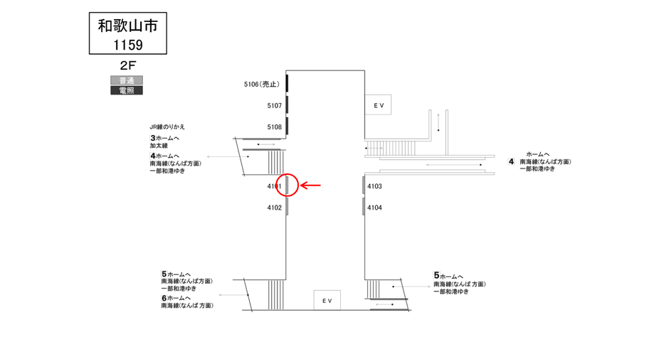 南海 和歌山市駅の駅構内 ホーム階段付近にある駅看板です。