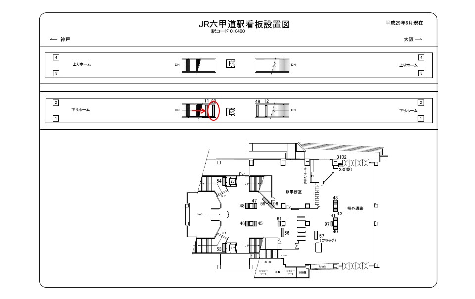 主に三ノ宮方面ホームから改札へ向かわれる方々に視認されます。