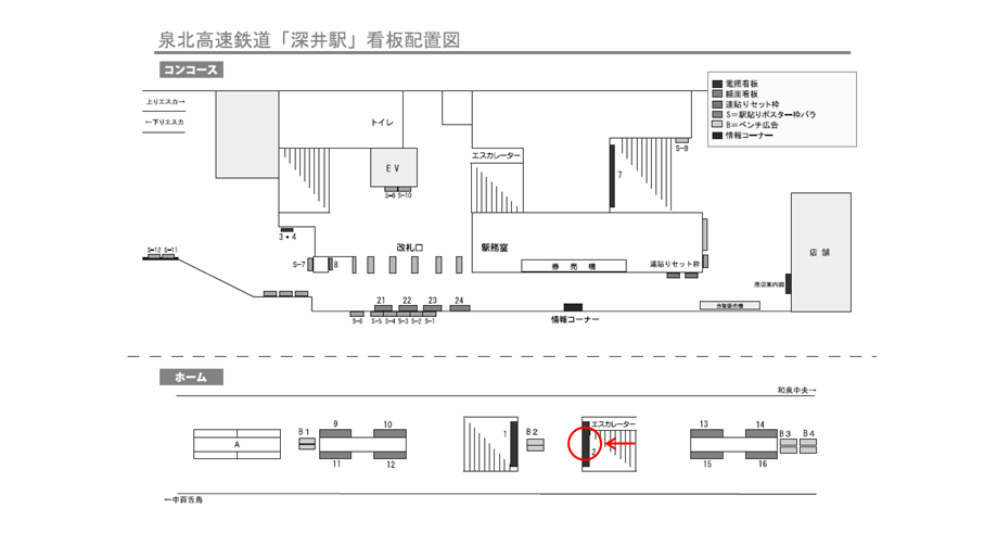 サービス周知や企業広告などに適しており、日常的に駅を使う「深井駅に生活基盤をもつ消費者」を対象とした広告にオススメです。