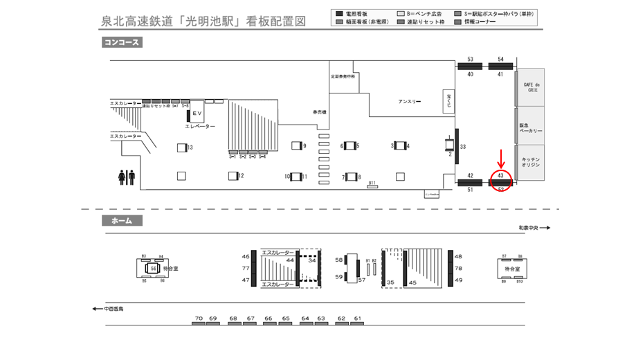 この駅看板は毎日駅を使う「光明池駅に生活基盤をもつ消費者」を対象とした広告にオススメです。