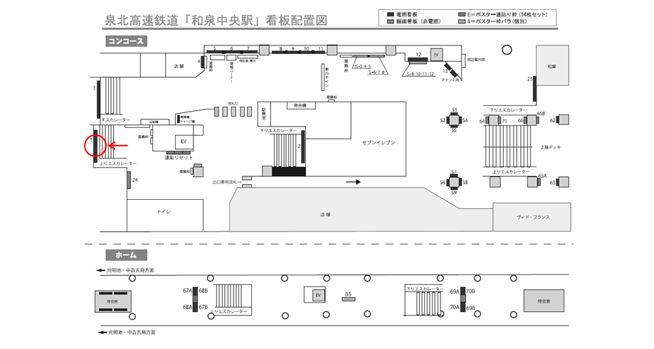 サービス周知や企業広告などに適しており、日常的に駅を使う「和泉中央駅に生活基盤をもつ消費者」を対象とした広告にオススメです。