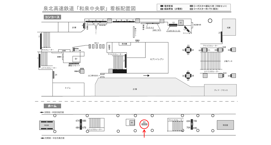 和泉中央駅 【ホーム用】の駅看板の利用状況はスタッフまでお問い合わせください。この看板はもちろんですが、他にもいい広告看板が空いていれば合わせてご案内差し上げます。