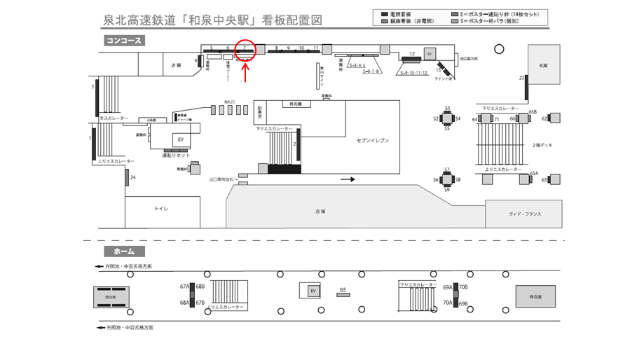 この駅看板は毎日駅を使う「和泉中央駅に生活基盤をもつ消費者」を対象とした広告にオススメです。