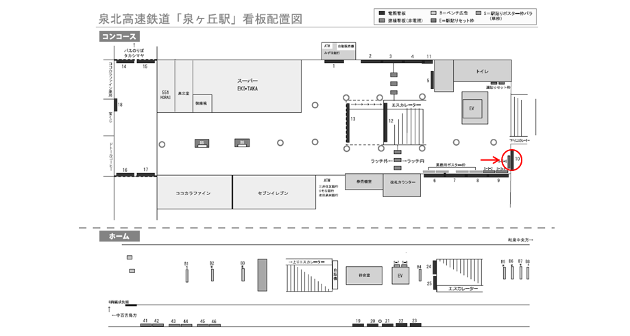 泉北高速 泉ケ丘駅の駅看板の利用状況はスタッフまでお問い合わせください。この看板はもちろんですが、他にもいい広告看板が空いていれば合わせてご案内差し上げます。