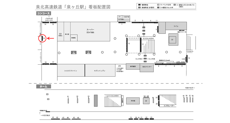 この駅看板は毎日駅を使う「泉ケ丘駅に生活基盤をもつ消費者」を対象とした広告にオススメです。