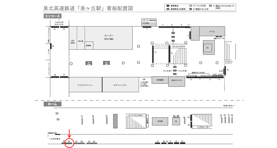 泉ケ丘駅 【ホーム用】の駅看板の利用状況はスタッフまでお問い合わせください。この看板はもちろんですが、他にもいい広告看板が空いていれば合わせてご案内差し上げます。