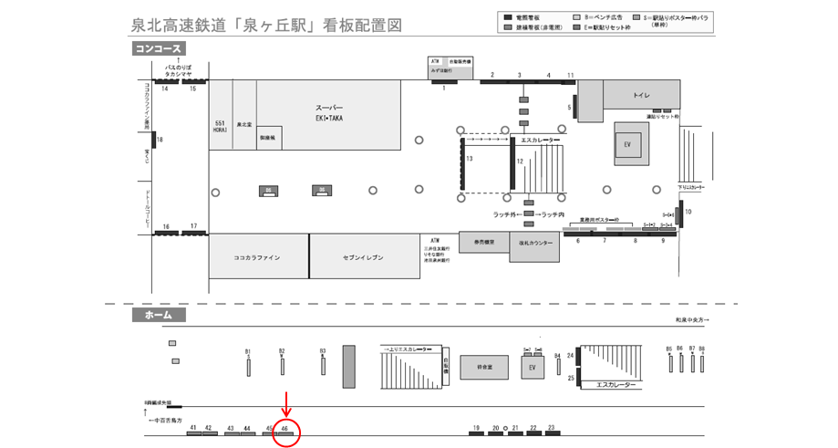 泉ケ丘駅 【ホーム用】の駅看板の利用状況はスタッフまでお問い合わせください。この看板はもちろんですが、他にもいい広告看板が空いていれば合わせてご案内差し上げます。