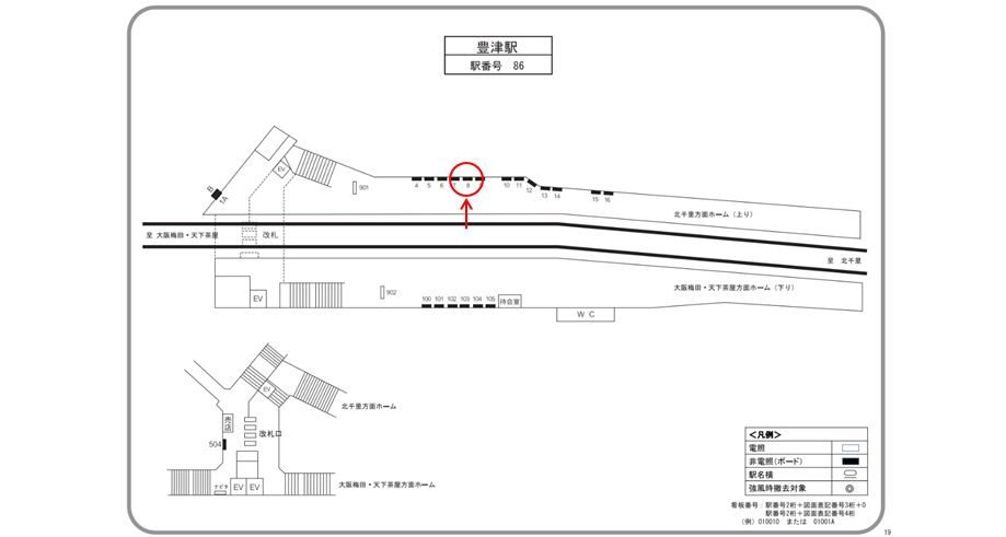 豊津駅のホーム上にある広告看板です。山田・北千里方面の電車を待つ人に見てもらえます。