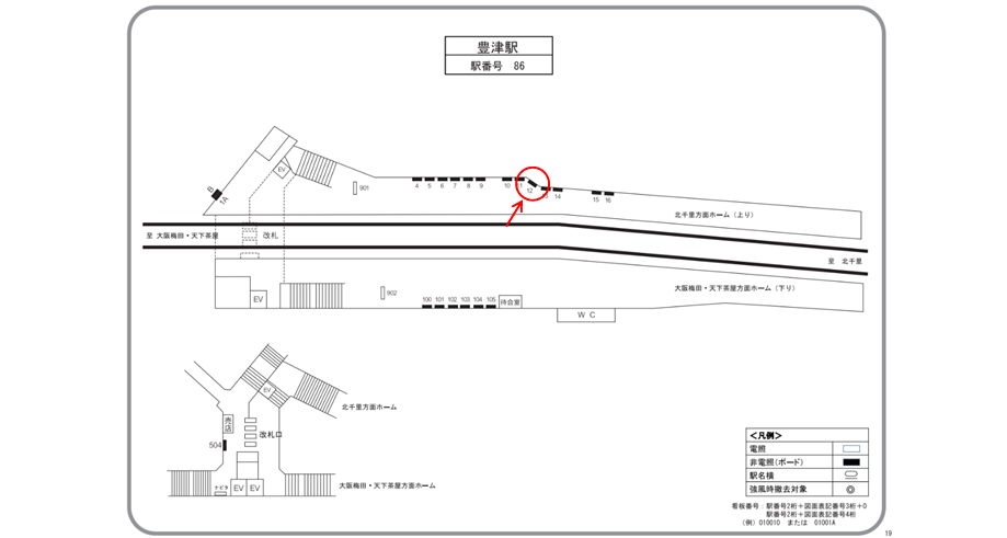 豊津駅のホーム上にある広告看板です。山田・北千里方面の電車を待つ人に見てもらえます。