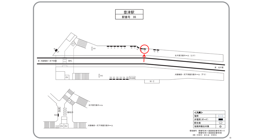 豊津駅のホーム上にある広告看板です。山田・北千里方面の電車を待つ人に見てもらえます。