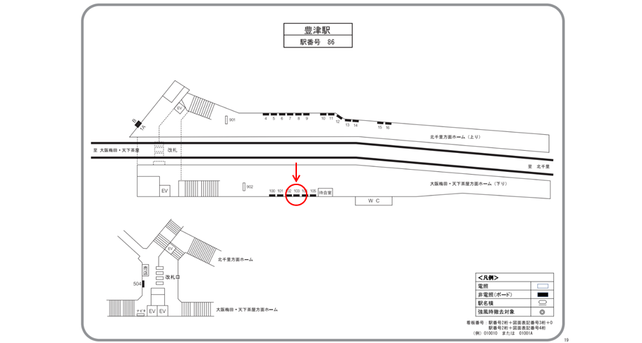 豊津駅のホーム上にある広告看板です。山田・北千里方面の電車を待つ人に見てもらえます。