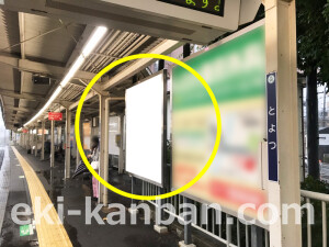 豊津駅のホーム上にある広告看板です。山田・北千里方面の電車を待つ人に見てもらえます。