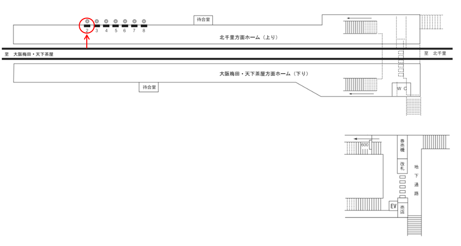 下新庄駅のホーム上にある広告看板です。北千里・山田・吹田方面ホームと改札を行き来する人に見てもらえます。