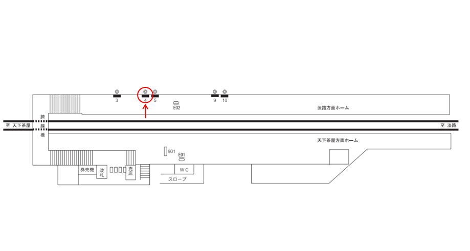 柴島駅のホーム上にある広告看板です。北千里・高槻市・京都河原町・嵐山・大阪梅田・神戸三宮・宝塚方面の電車を待つ人に見てもらえます。