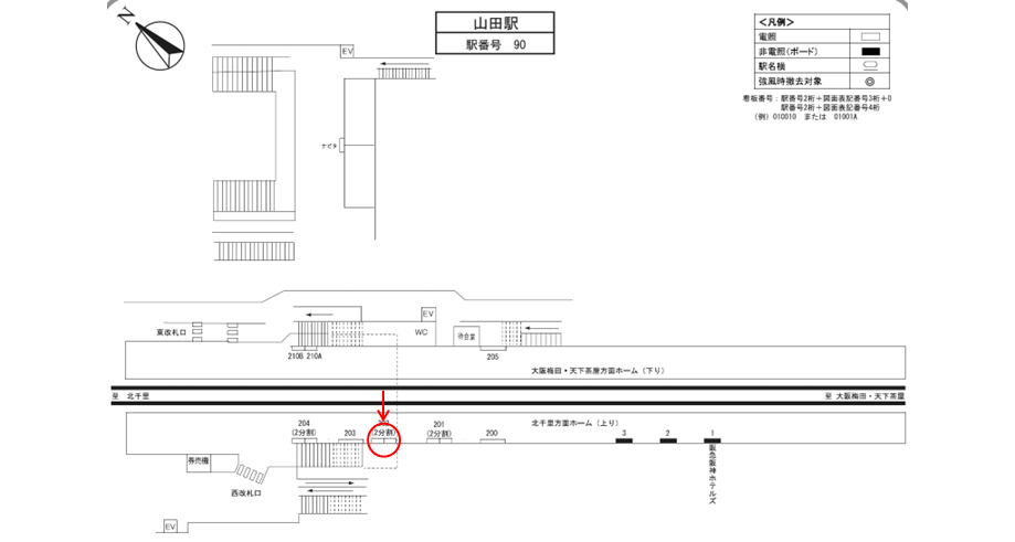 山田駅のホーム上にある広告看板です。北千里方面の電車を待つ人に見てもらえます。