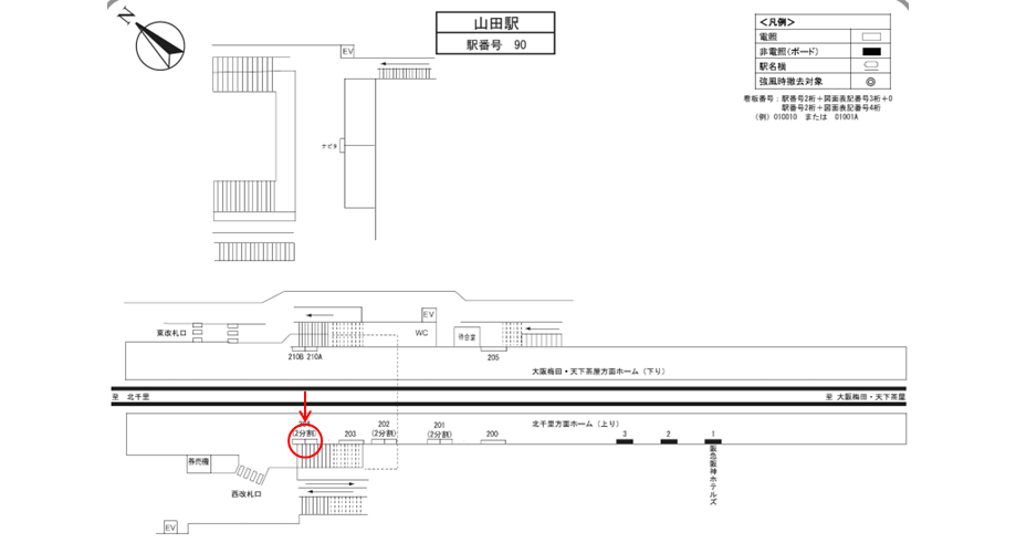 山田駅のホーム上にある広告看板です。北千里方面の電車を待つ人に見てもらえます。