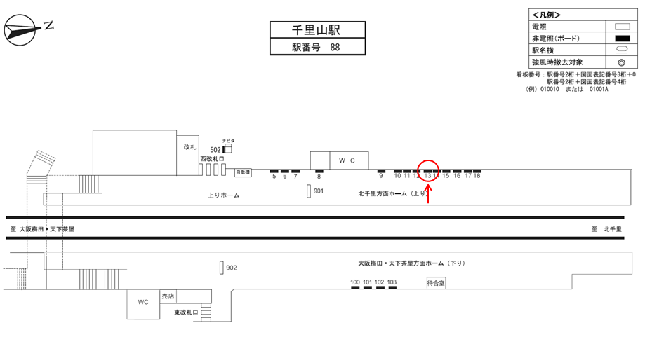 千里山駅のホーム上にある広告看板です。北千里・山田方面の電車を待つ人に見てもらえます。