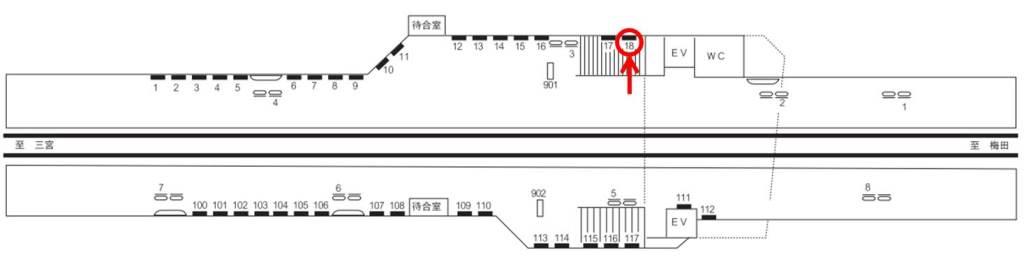 梅田方面ホームをご利用の方々はもちろん、三宮方面ホームで電車をお待ちの方々にもご覧頂くことができます。