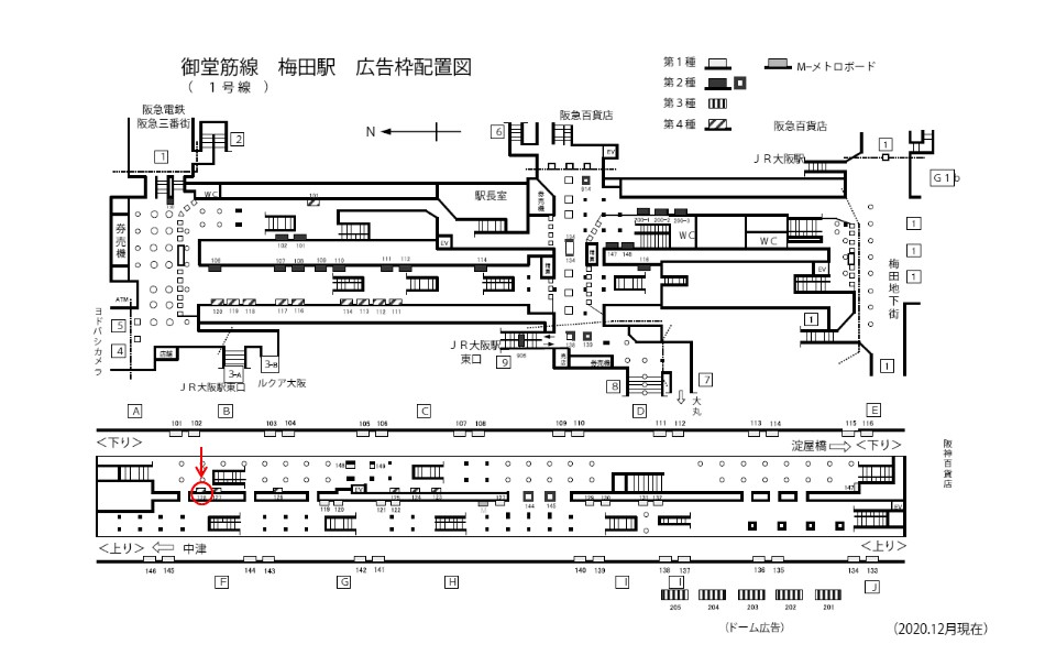 【駅看板・駅広告】Osaka Metro 梅田駅 御堂筋線№4-128
