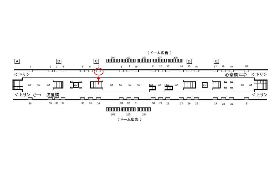 下りホーム(心斎橋方面)にて電車をお待ちの方々に向けて訴求することができます。