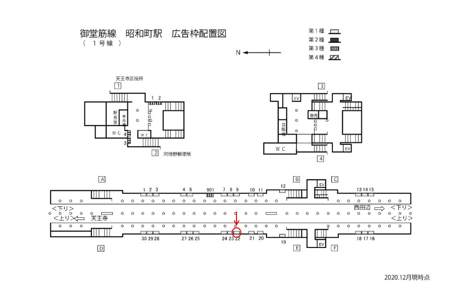 御堂筋線 昭和町駅ホームの駅広告(駅看板)です。