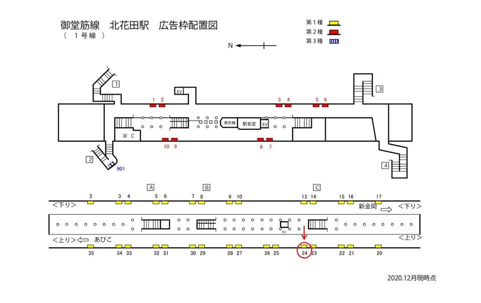 北花田駅の天王寺方面ホームに掲出される電飾タイプの看板となります。