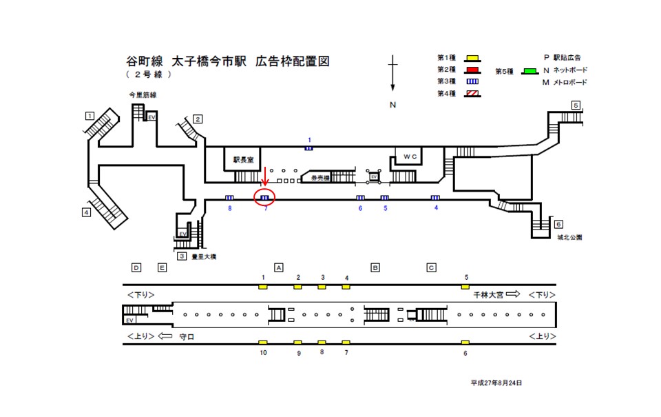 地下鉄太子橋今市駅、改札外コンコースの駅広告(駅看板)設備のご紹介です。