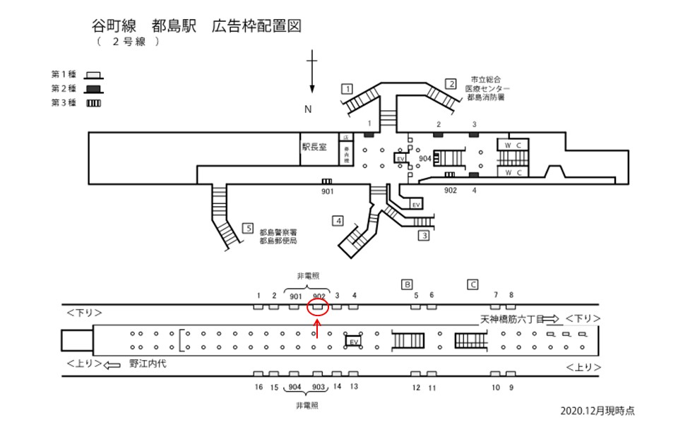 主に天神橋筋六丁目ホームにて電車をお待ちの方々に向けて視認されます。