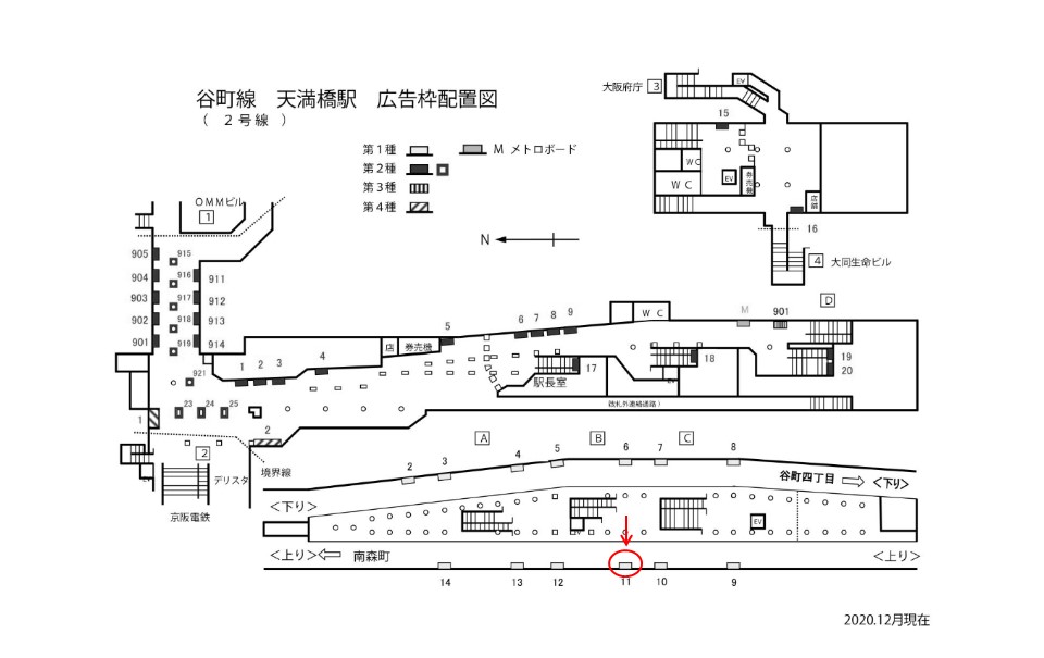 主に上りホーム(南森町方面)をご利用される方々に視認されます。