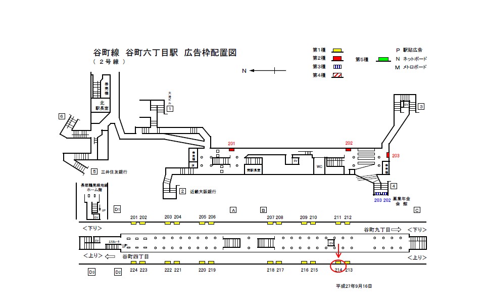 谷町四丁目方面ホームにて電車をお待ちの方々に視認されます。