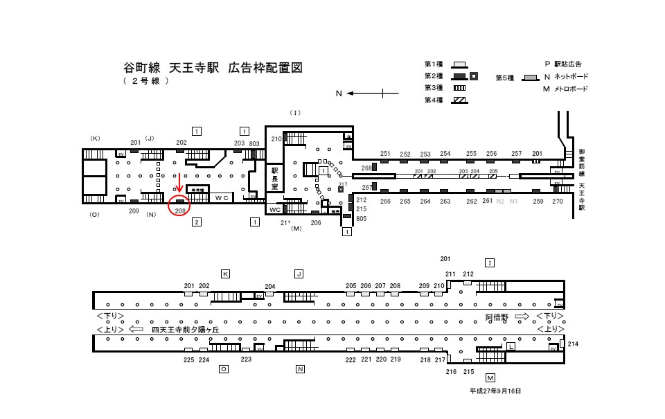 谷町線天王寺駅、改札外コンコースに掲出される電飾タイプの看板となります。