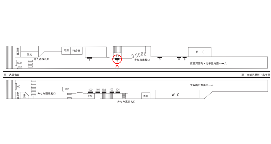 南方駅のホーム上にある広告看板です。淡路・茨木市・高槻市・京都河原町・北千里・嵐山方面の電車を待つ人に見てもらえます。