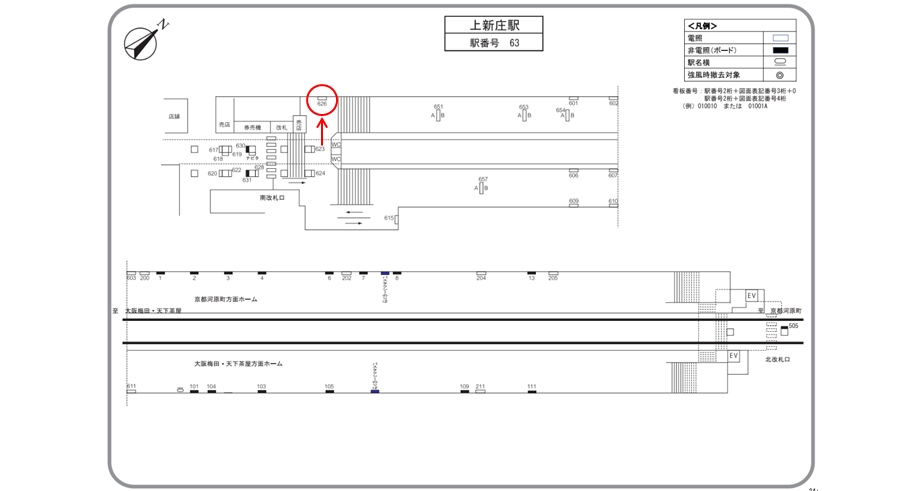 上新庄駅のホーム上にある広告看板です。茨木市・高槻市・京都河原町・嵐山方面の電車を待つ人に見てもらえます。