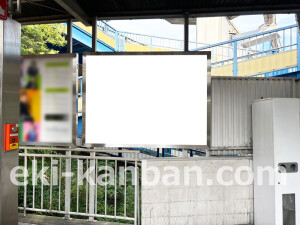 南茨木駅のホーム上にある広告看板です。淡路・十三・大阪梅田・天下茶屋方面の電車を待つ人に見てもらえます。