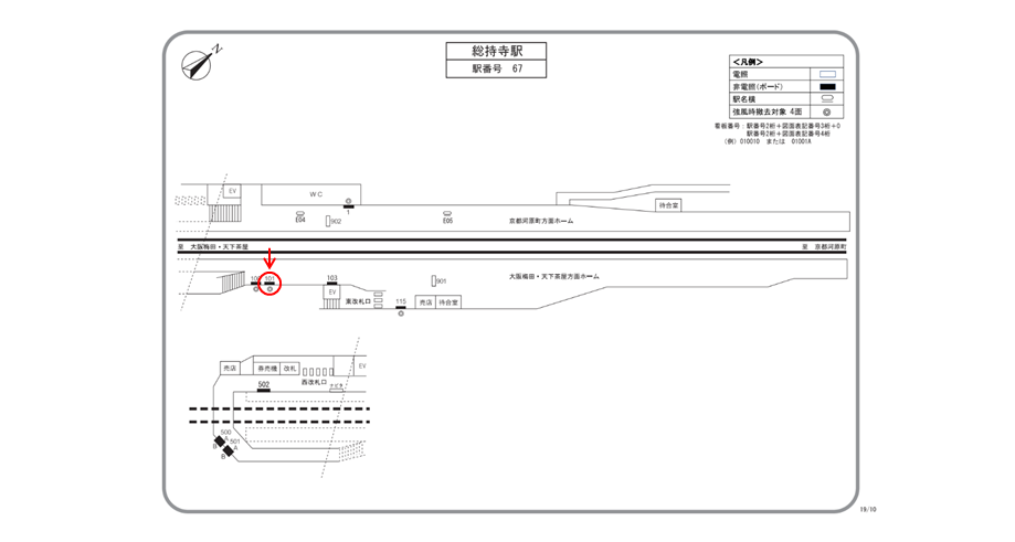 総持寺駅のホーム上にある広告看板です。茨木市・淡路・十三・大阪梅田・天下茶屋方面の電車を待つ人に見てもらえます。