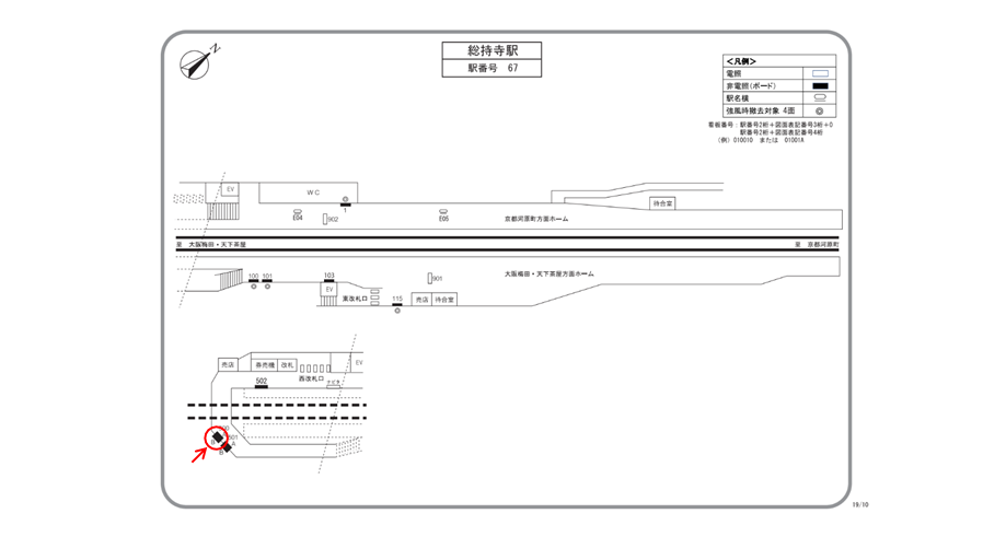 総持寺駅のホーム上にある広告看板です。高槻市・京都河原町・嵐山方面の電車を待つ人に見てもらえます。