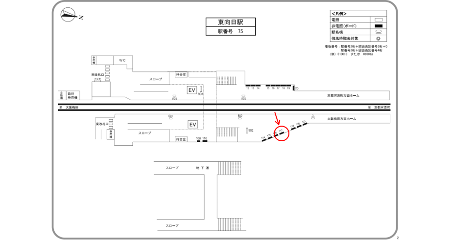 東向日駅のホーム上にある広告看板です。高槻市・淡路・大阪梅田・天下茶屋方面の電車を待つ人に見てもらえます。