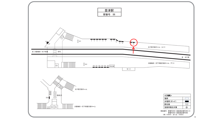 豊津駅のホーム上にある広告看板です。山田・北千里方面の電車を待つ人に見てもらえます。