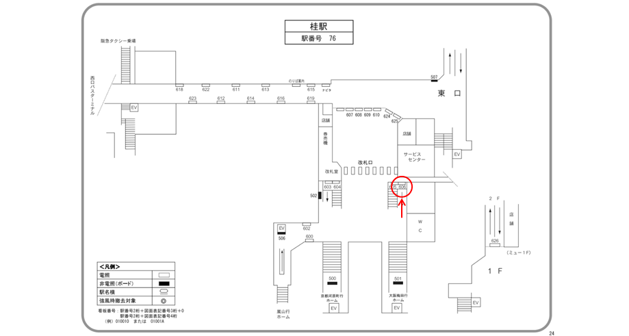 桂駅の改札外コンコースにある広告看板です。改札口を利用する人に見てもらえます。