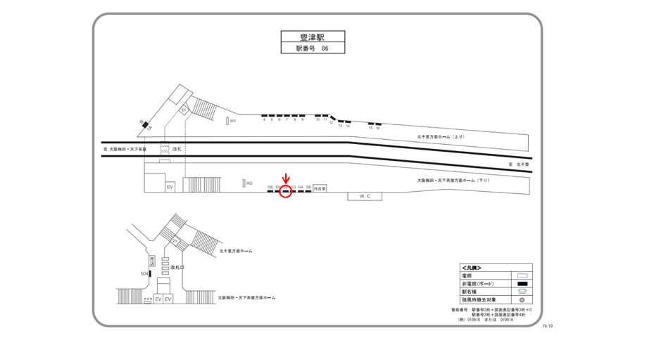 豊津駅のホーム上にある広告看板です。山田・北千里方面の電車を待つ人に見てもらえます。