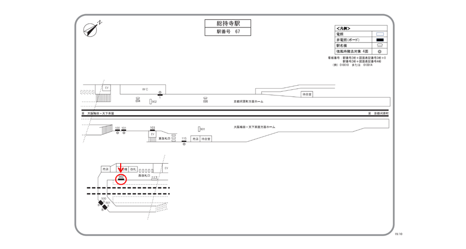 総持寺駅のホーム上にある広告看板です。高槻市・京都河原町・嵐山方面の電車を待つ人に見てもらえます。