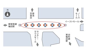 毎日多くの来街者を誇る「ホワイティうめだ」の中でも最も通行量の多い