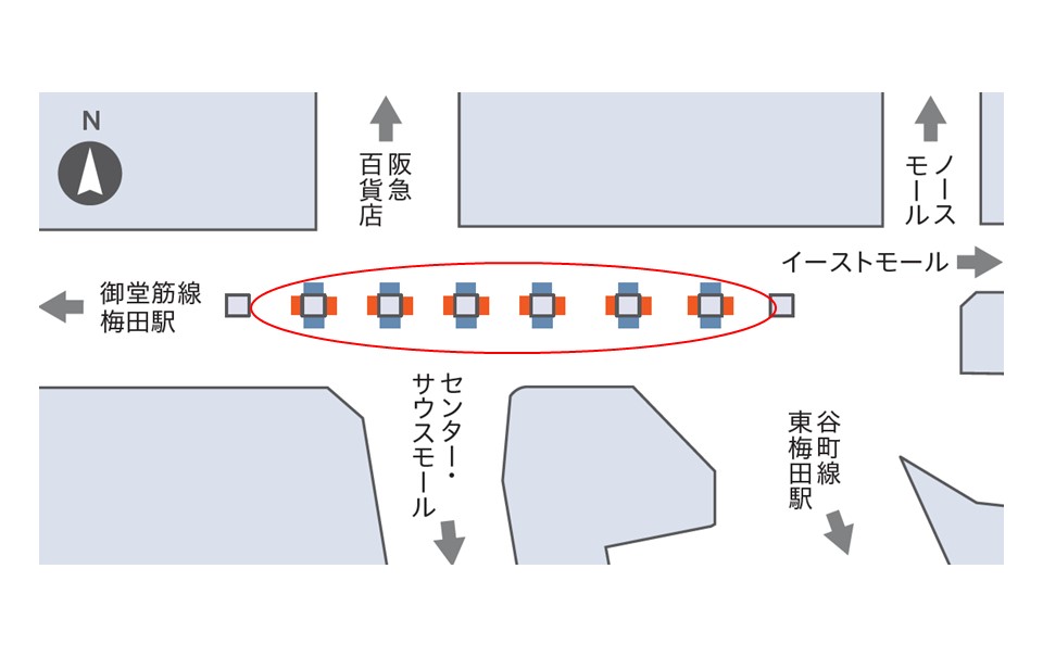 Osaka/Metro(大阪メトロ) 梅田駅/ホワイティうめだデジタル6№6デジタルサイネージ、位置図