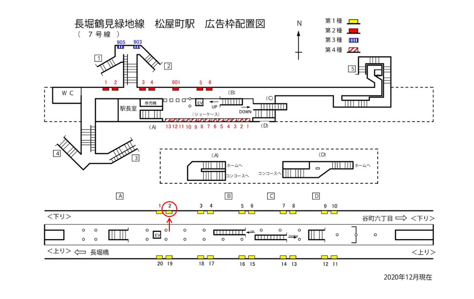 Osaka Metro長堀鶴見緑地線松屋町駅のホーム軌道内に掲出された電照看板です。